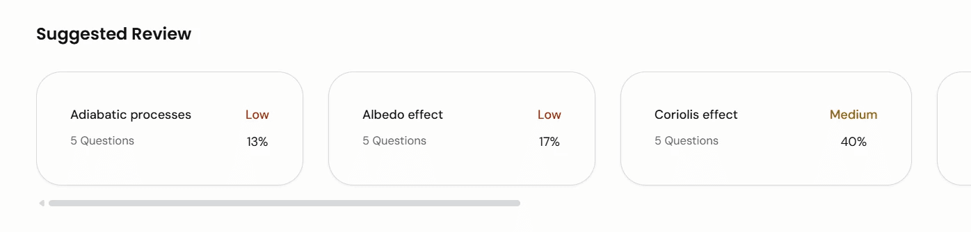 On-demand practice questions generated from lecture videos that are tailored to each student’s learning needs combined with progress-tracking to identify strengths and areas of improvement.